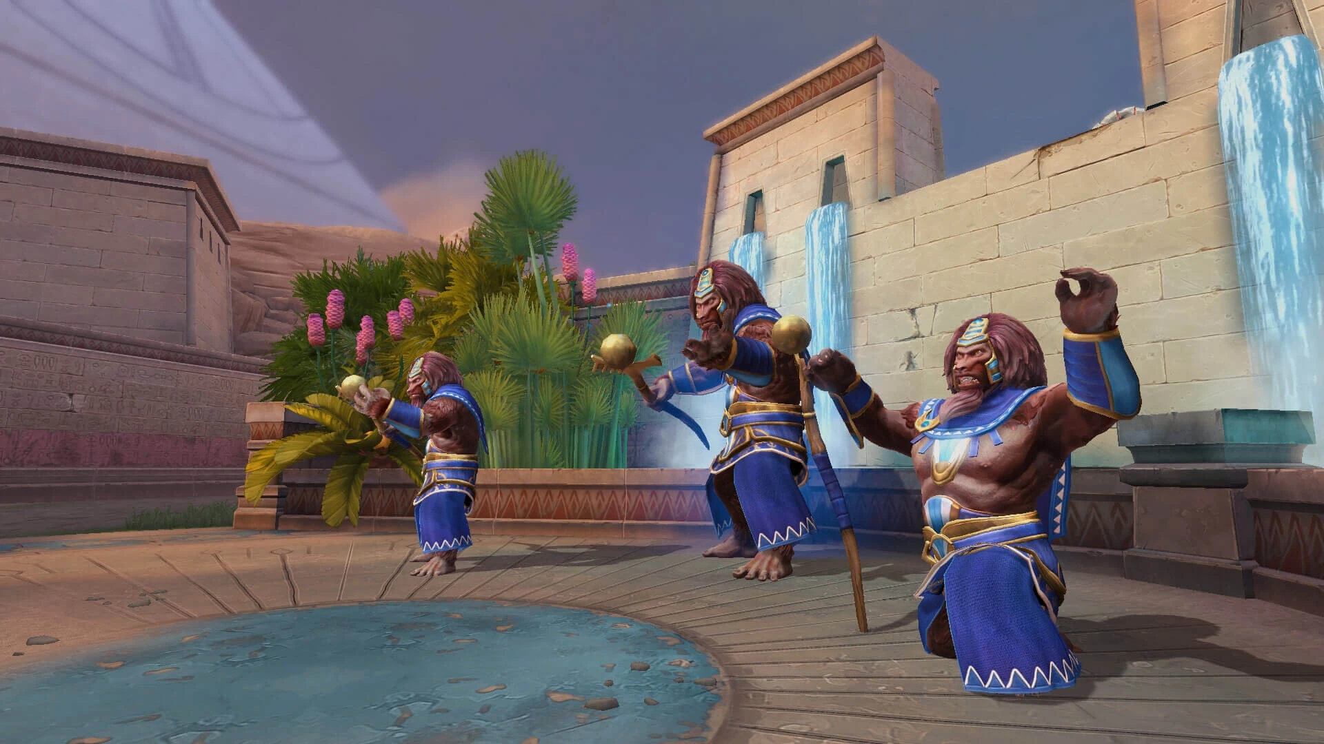 - Hitting one of the pharaoh statues scattered across the map with a basic attack will cause it to glow and a sound cue will play. Activating all 5 pharaoh statues will cause a burst of light with Ra's glyph to appear on the pyramid behind chaos' spawn.
