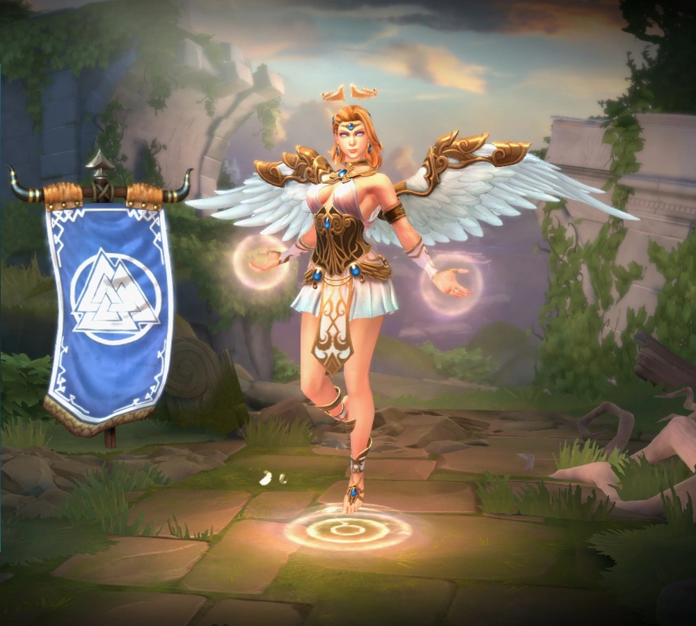 - Light Hel in this skin shares its theme with Dark Angel/Celestial Stinger Ah Muzen Cab, Midnight Dove Awilix, Radiant Heroine Bellona, Archangel Chernobog, Angel of Chaos Cthulhu, Celestial Mayhem Discordia, Celestial Eset, Guided Light Ganesha, Sacred Grounds Geb, Divine Wind Gilgamesh, Seraph Horus, Heaven's Arrow Hou Yi, Striking Archon Ishtar, Divine Axe Izanami, Divine Right Jing Wei, Gazing Archon Medusa, Celestial Deliverer Mercury, Master of Light Merlin, Seraph's Bow Neith, Holo Halo Pele, Radiant Archon Ra, Sacred Arrow Rama, Celestial Inferno Surtr, Archon Thanatos, Divine Retribution Thanatos, Angelic Archon Yemoja and Almighty Archon Zeus.