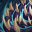 卡律布狄斯放出巨口发射尖刺,造成基础伤害(+60/70/80/90/100%基础伤害),持续4秒。这种射弹比普通攻击射弹更大更快,且能穿透士兵。命中敌方神明和墙壁时,这些尖刺会分裂,造成额外10/15/20/25/30(+10%物理强度)点伤害。每击裂片可获得2%潮汐。