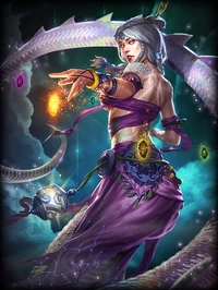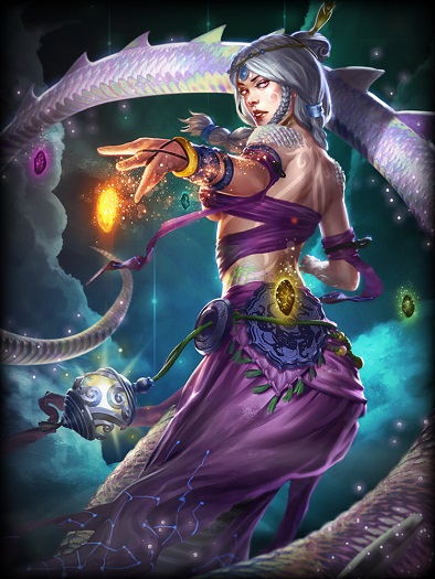 女娲凝聚水汽,在自身周围20英尺范围形成持续6秒的迷雾,迷雾将会向前方移动。女娲和她的盟友处于迷雾中将会获得隐身效果,并提高10%的移动速度,发动攻击会打破潜行效果1秒。