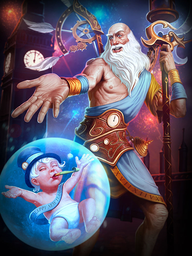 时间守护者柯罗诺斯,沐浴于十二星座的光辉,掌管永恒时钟。他计算着秒针的嘀嗒声,防止任何人扭转时间不断向前的趋势。