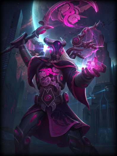 柯罗诺斯向前释放一个旋转的时钟齿轮,降低敌人20%的攻击速度,直至停止后眩晕敌人1秒。初次命中会对敌人造成50/70/90/110/130(+40%魔法强度)点伤害,随后对被眩晕的敌人再次造成技能伤害。