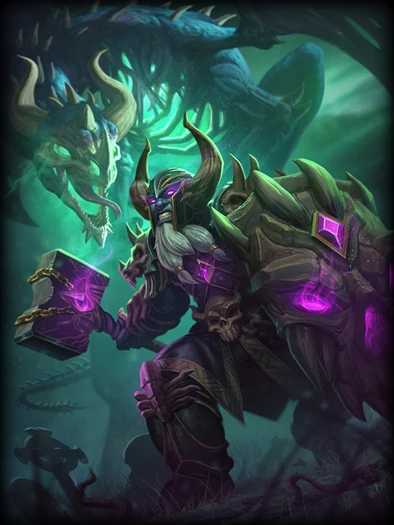 法夫纳向前掷出手中的战锤,对路径上敌人造成80/125/170/215/260(+50%魔法强度)点伤害。命中一名敌方神明则眩晕其1.5秒。被眩晕的目标带有诅咒光环,使目标和周围敌人减速20%,持续3秒。